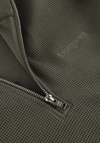 Dieser lässige Pullover aus reiner Baumwolle punktet mit zeitlosem Waffelstrick und Viertel-Reißverschluss.