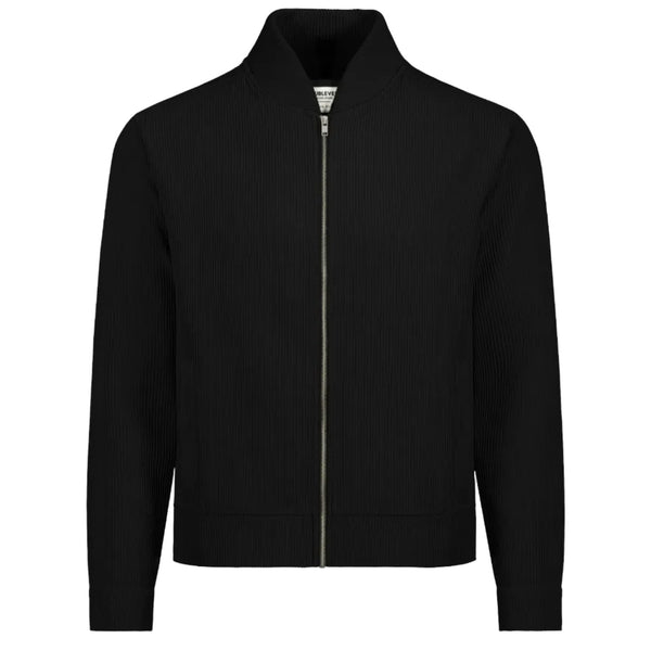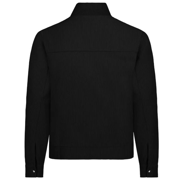 Diese moderne, schwarze Jacke überzeugt durch ihr cleanes und zugleich strukturiertes Design. Der fein gerippte Stoff verleiht ihr eine besondere Haptik und sorgt für eine dezente, edle Optik. Der durchgehende Reißverschluss auf der Vorderseite unterstreicht den minimalistischen Stil und macht die Jacke vielseitig kombinierbar.